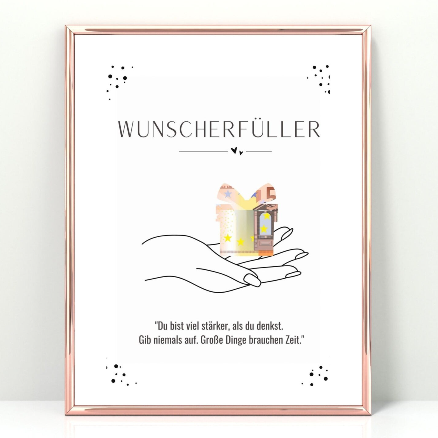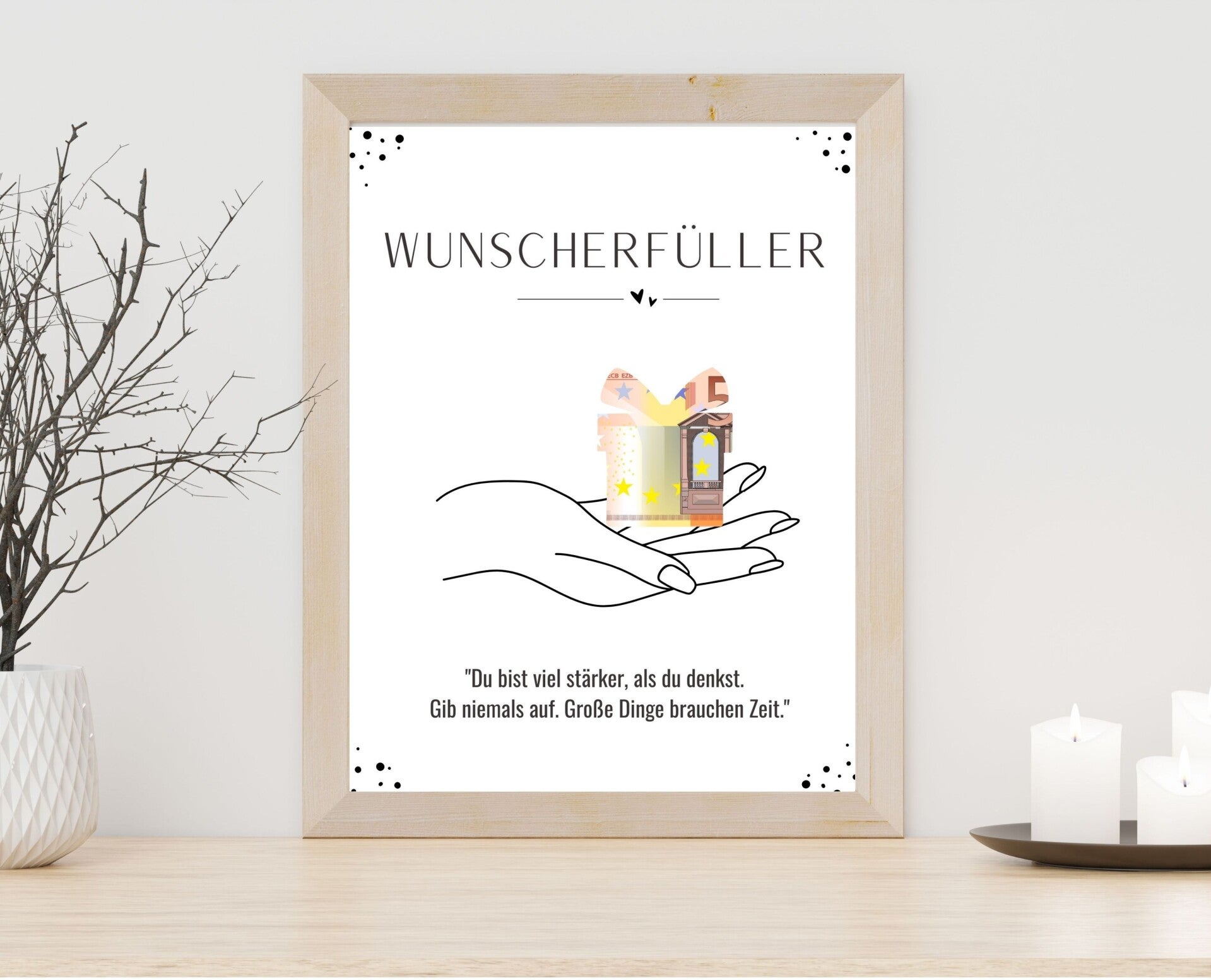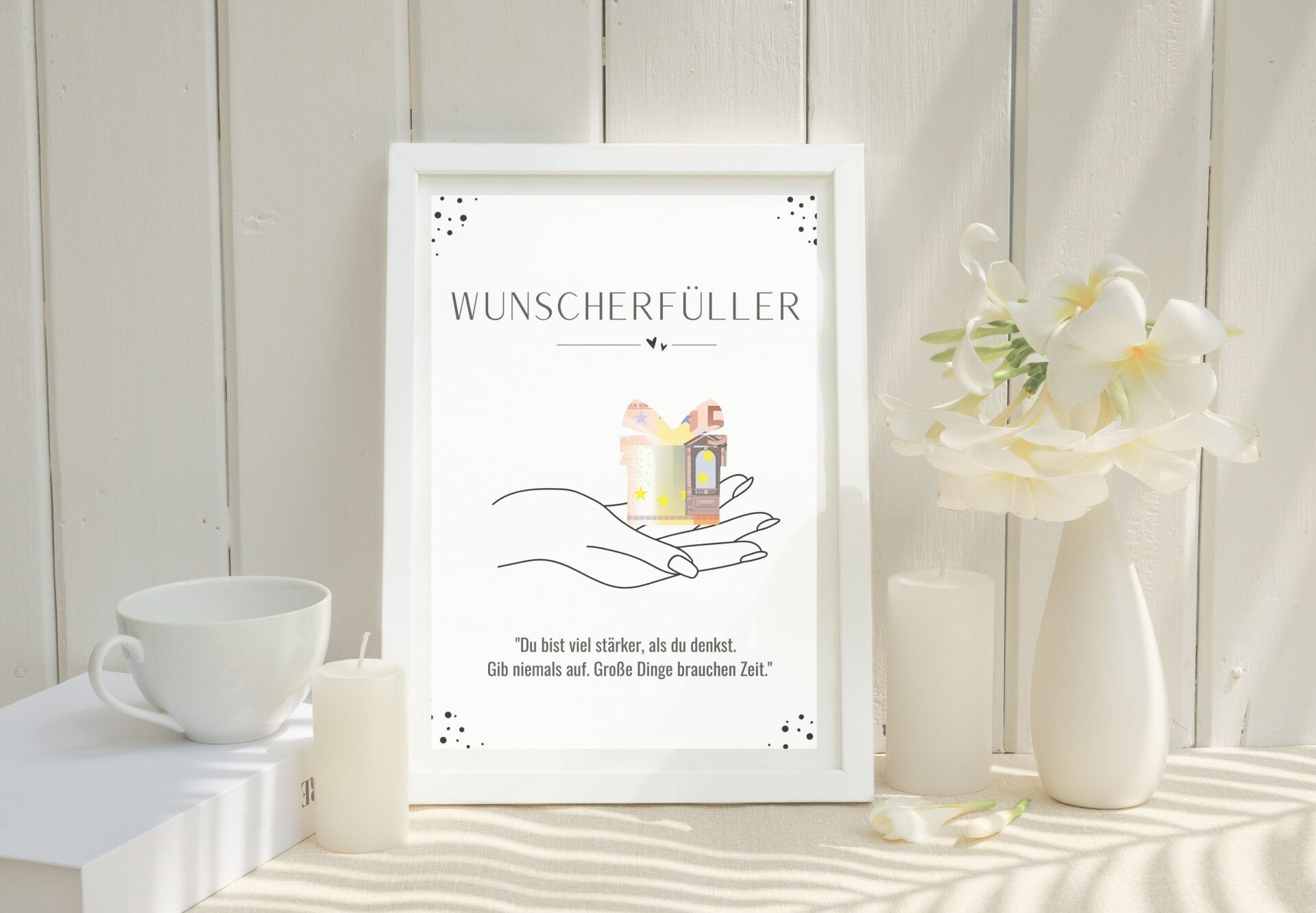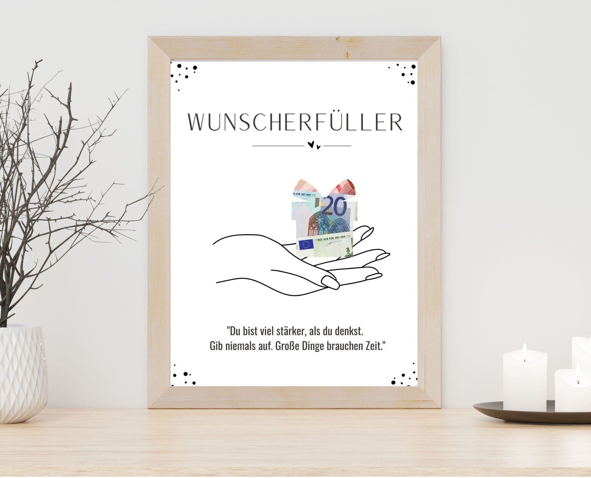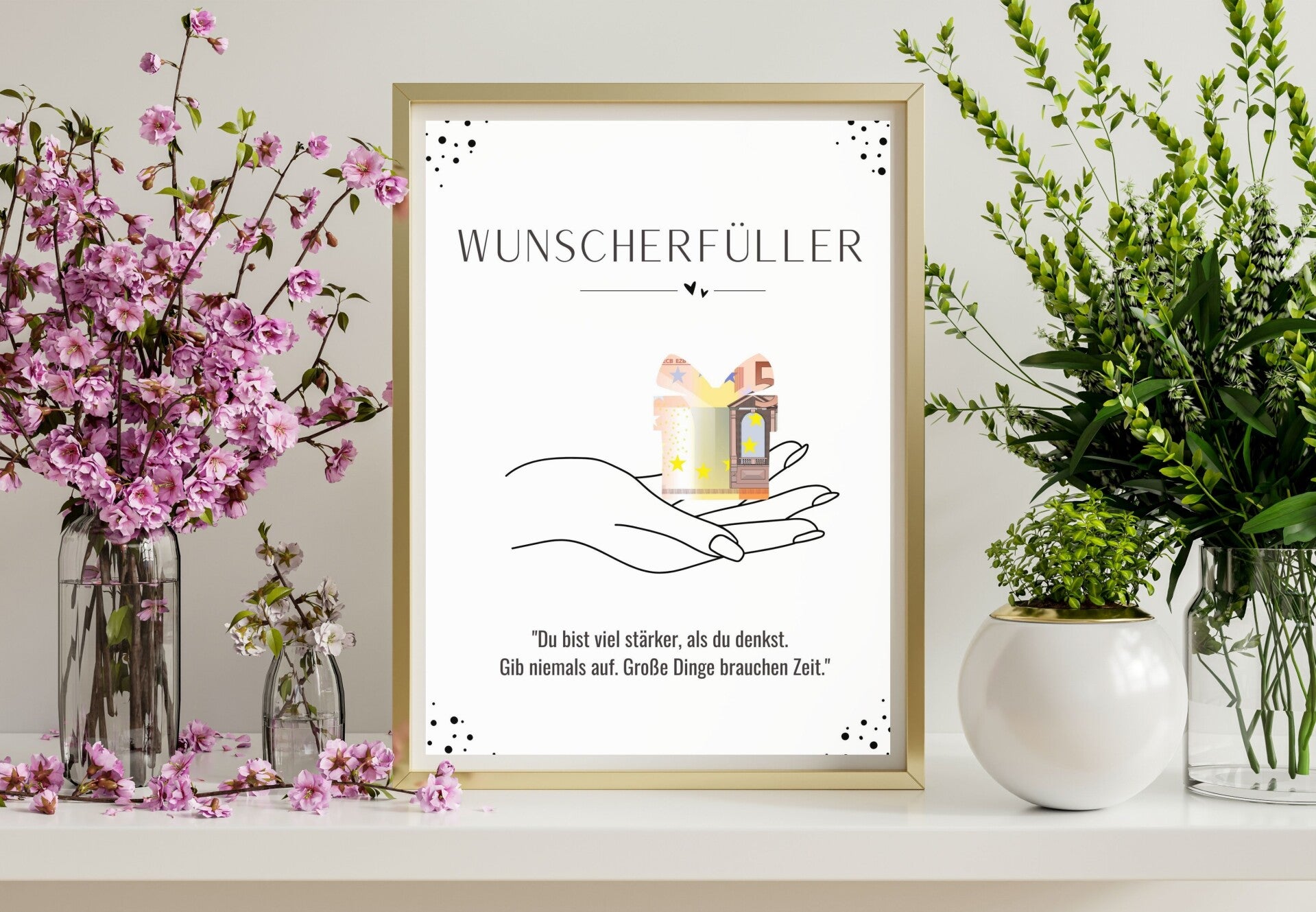 Bereite Freude und inspiriere zu großen Träumen mit unserem Geldgeschenk Wunscherfüller Poster. Mache jeden Anlass zu etwas Besonderem und ermutige dazu, das Leben in vollen Zügen zu genießen.