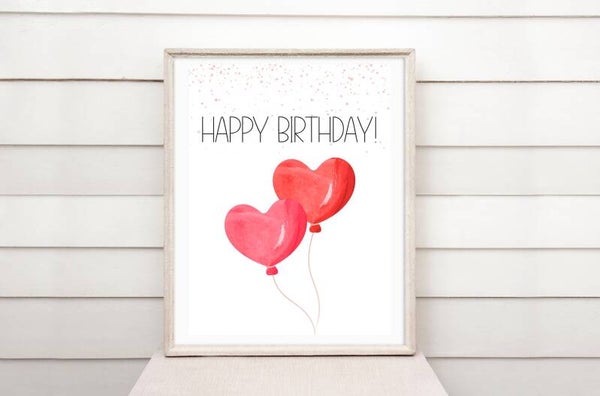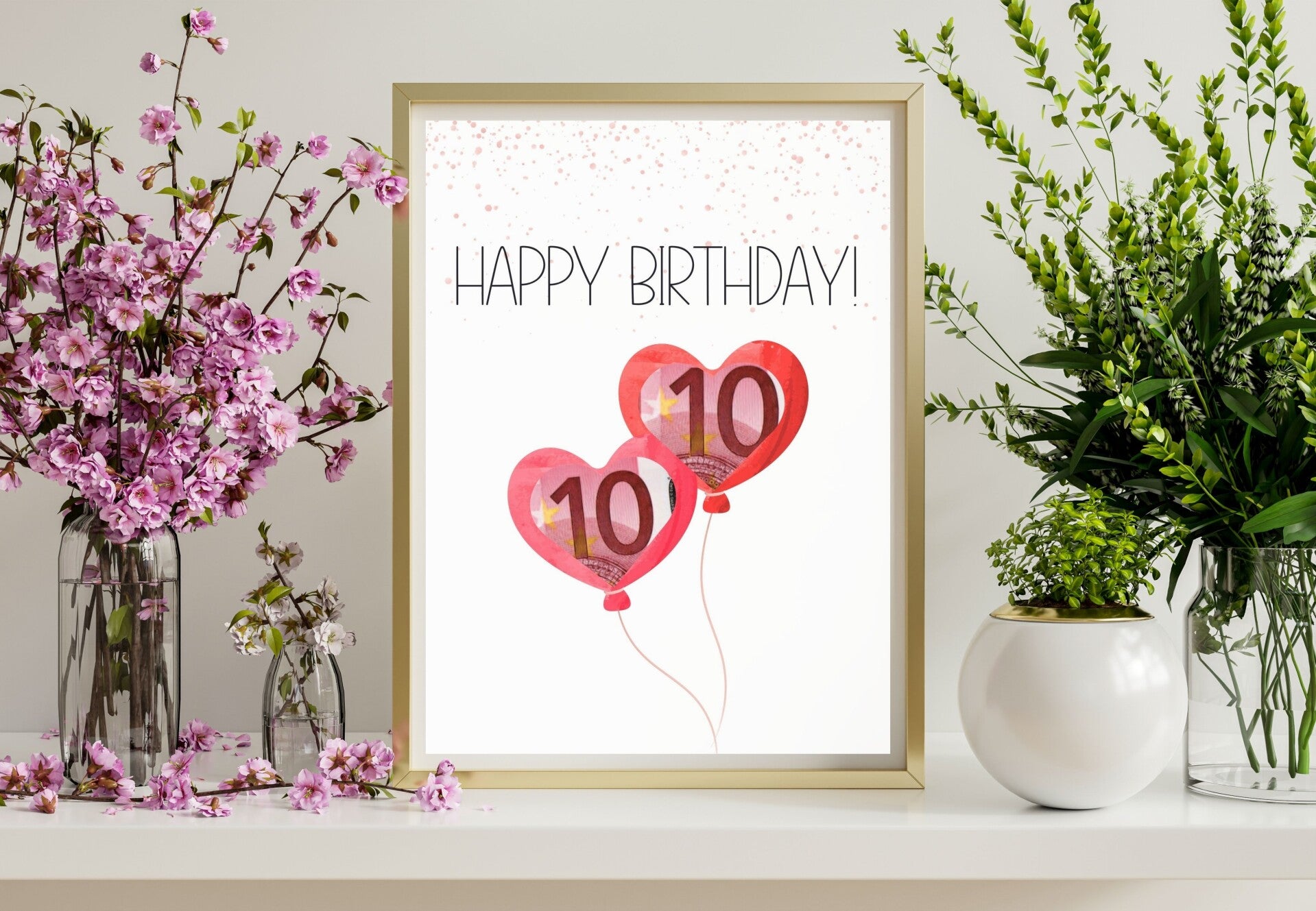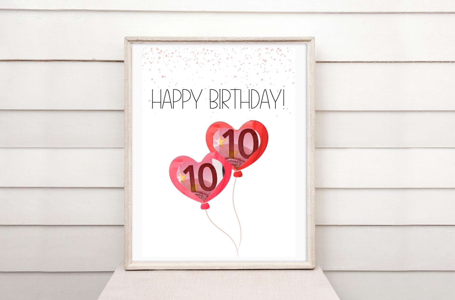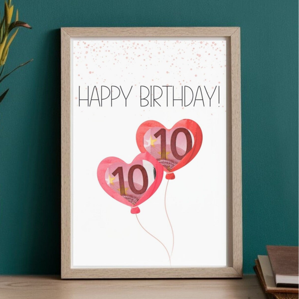 Geldgeschenk Happy Birthday Herzballoons Poster A4 minimalistisch | Geburtstagsgeschenk | kreativ Geld verschenken | DIY-Last-Minute-Geschenk | Sofort-Download zum Ausdrucken png Datei