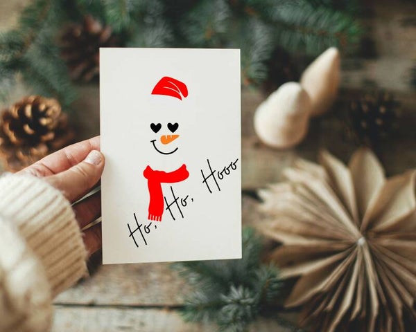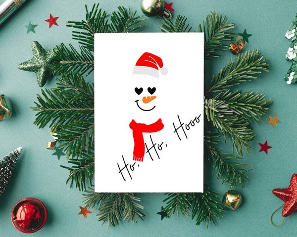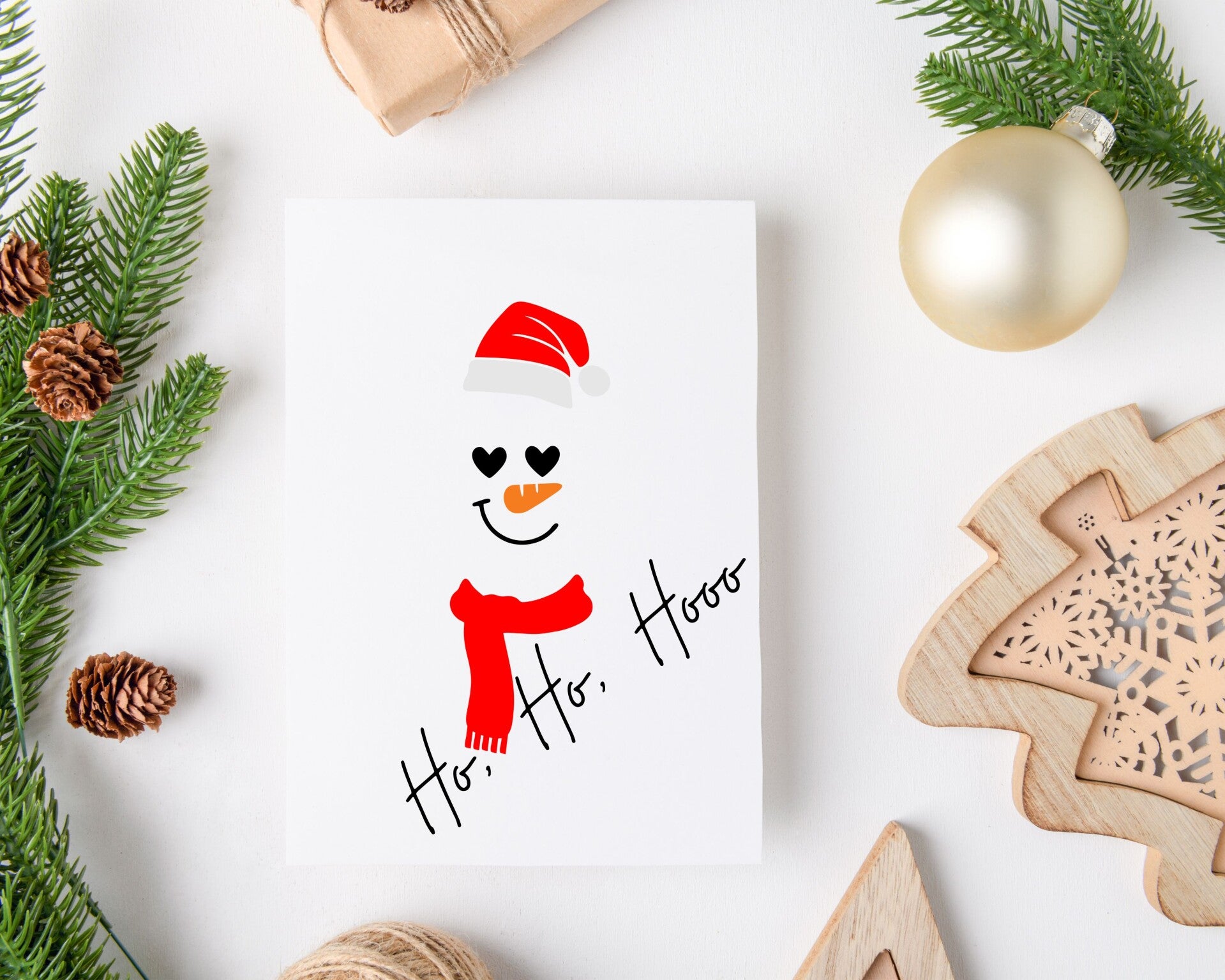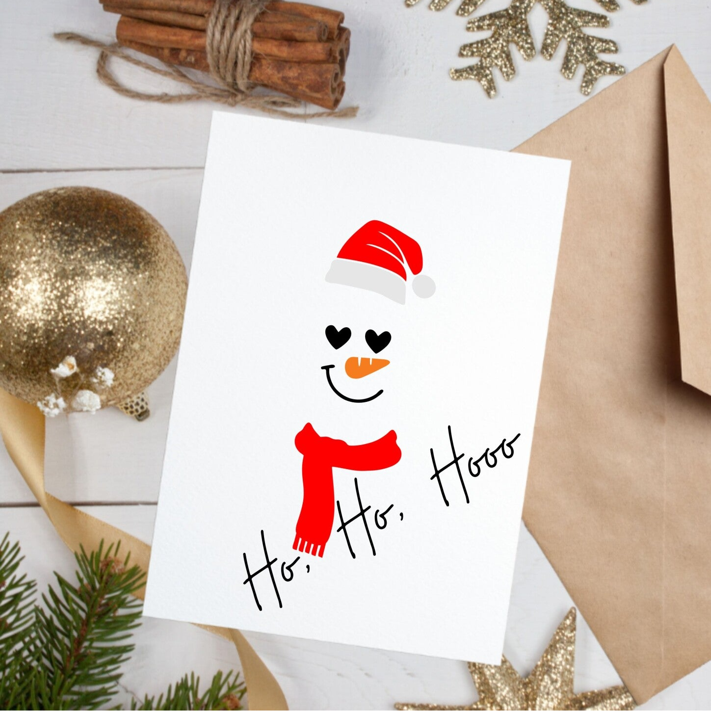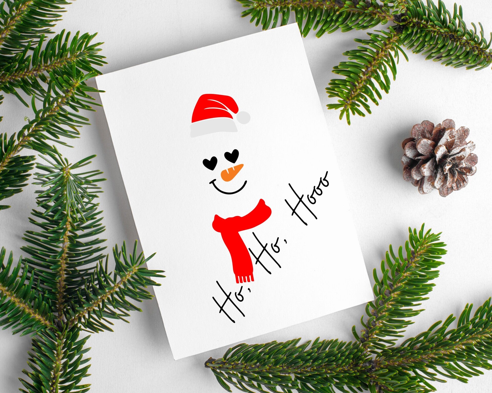 Mit dieser minimalistisch modernern "Ho, Ho, Ho, Schneemann Klappkarte" mit lustigen Weihnachten-Motiv schenkst du mehr als nur einen Gutschein – du schenkst Freude, Kreativität und ganz persönliche Momente!