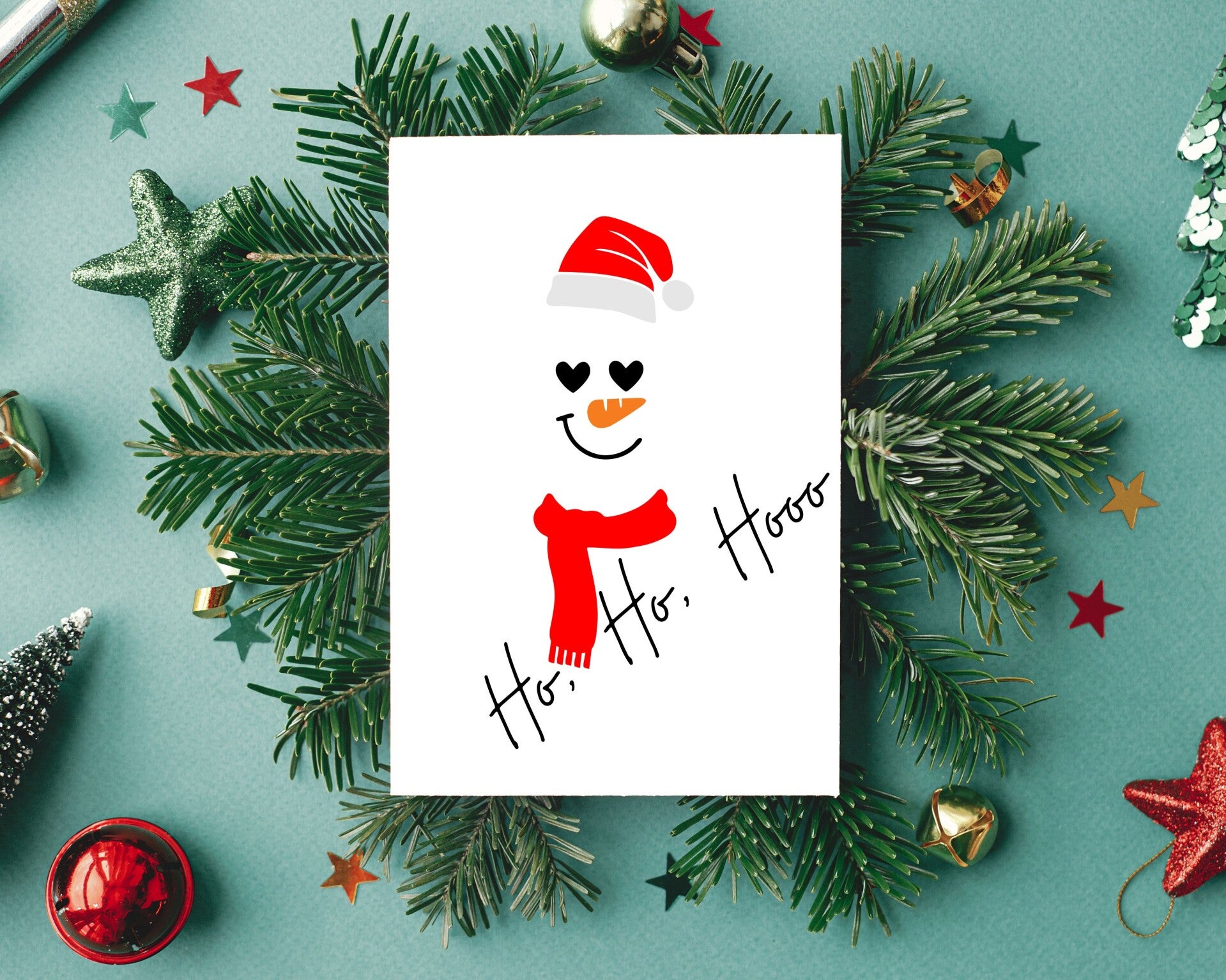 Schenke Freude und Kreativität mit unserer minimalistisch modernern "Ho, Ho, Ho, Schneemann Klappkarte" mit lustigen Weihnachten-Motiv mit viel Platz für eigene Verzierungen und Notizen ! Perfekt, um persönliche Wünsche auf charmante Weise zu überreichen.