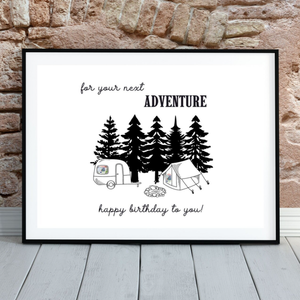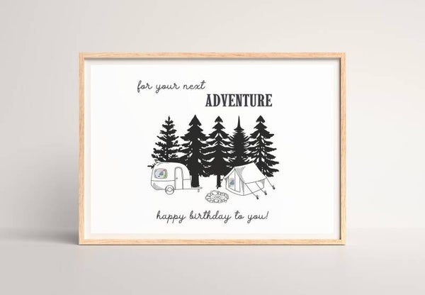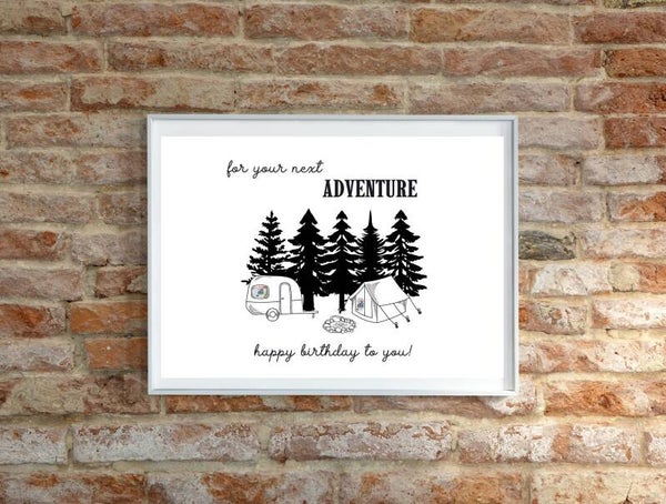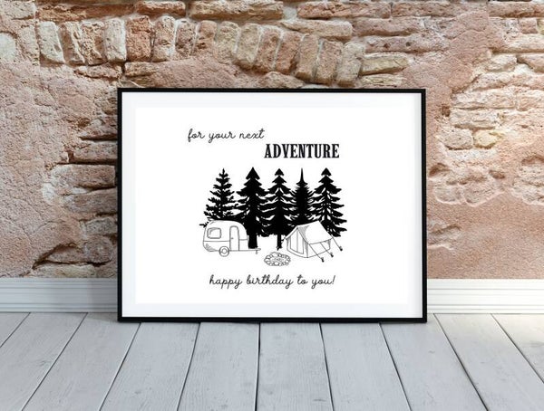 Camping Print Poster A4 | Geldgeschenk for your next Adventure Happy Birthday for you | Urlaubskasse Printable Wandbild | Reisekasse Urlaubskasse | DIY Geschenk | Sofort-Download png-Datei zum Ausdrucken