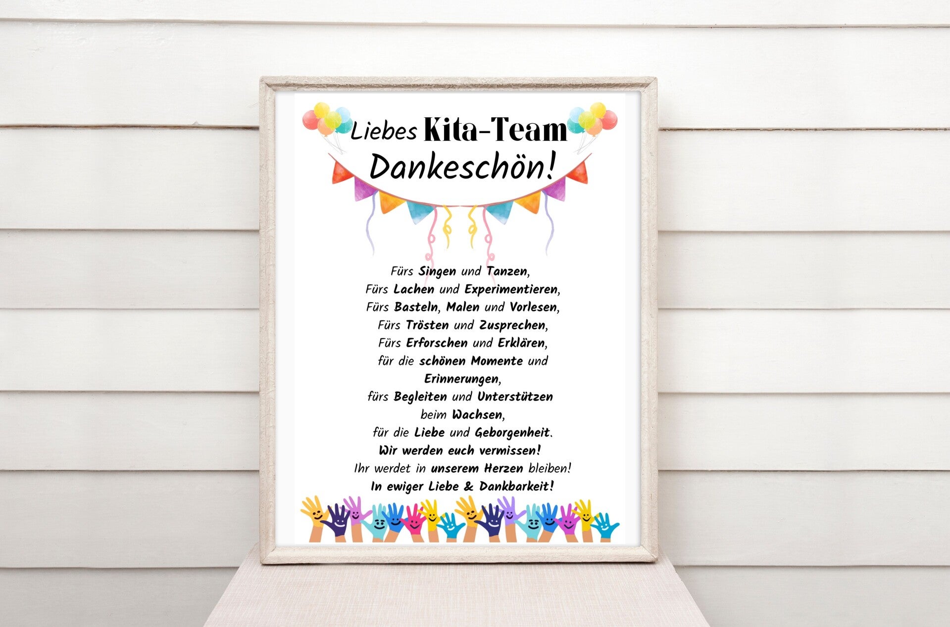 Abschiedsgeschenk Kita | Dankeschön Poster Kindergarten Team | Geschenkidee Abschied von Kita und Erzieherin | Dankeschön Geschenke Inspiration | Sofort-Download png-Datei