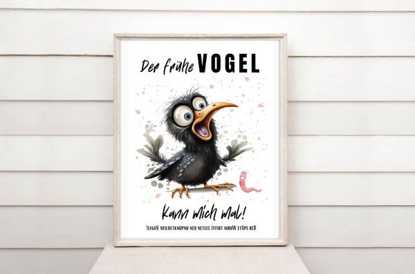 Der frühe Vogel kann mich mal! lustiges DIY Poster A4 | freche Wandbilder Büro Home Office | Geschenk Arbeitskollege | Geburtstagsgeschenk | schnelle DIY Druckvorlage Last-Minute-Geschenke | Sofort-Download png-Datei