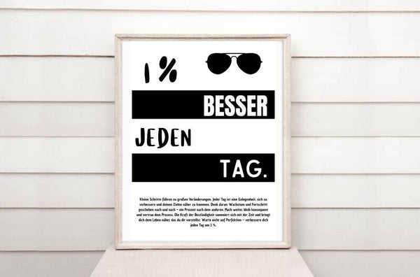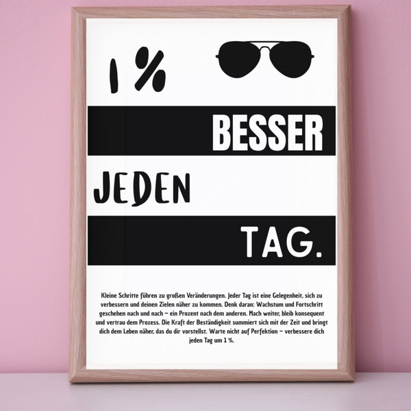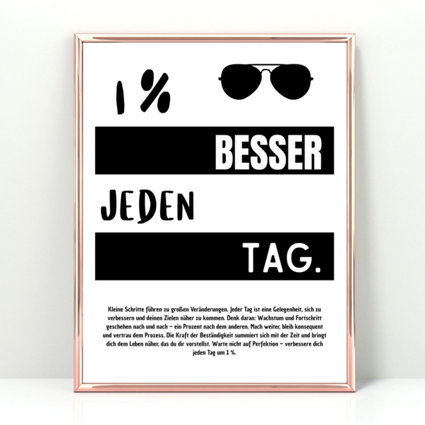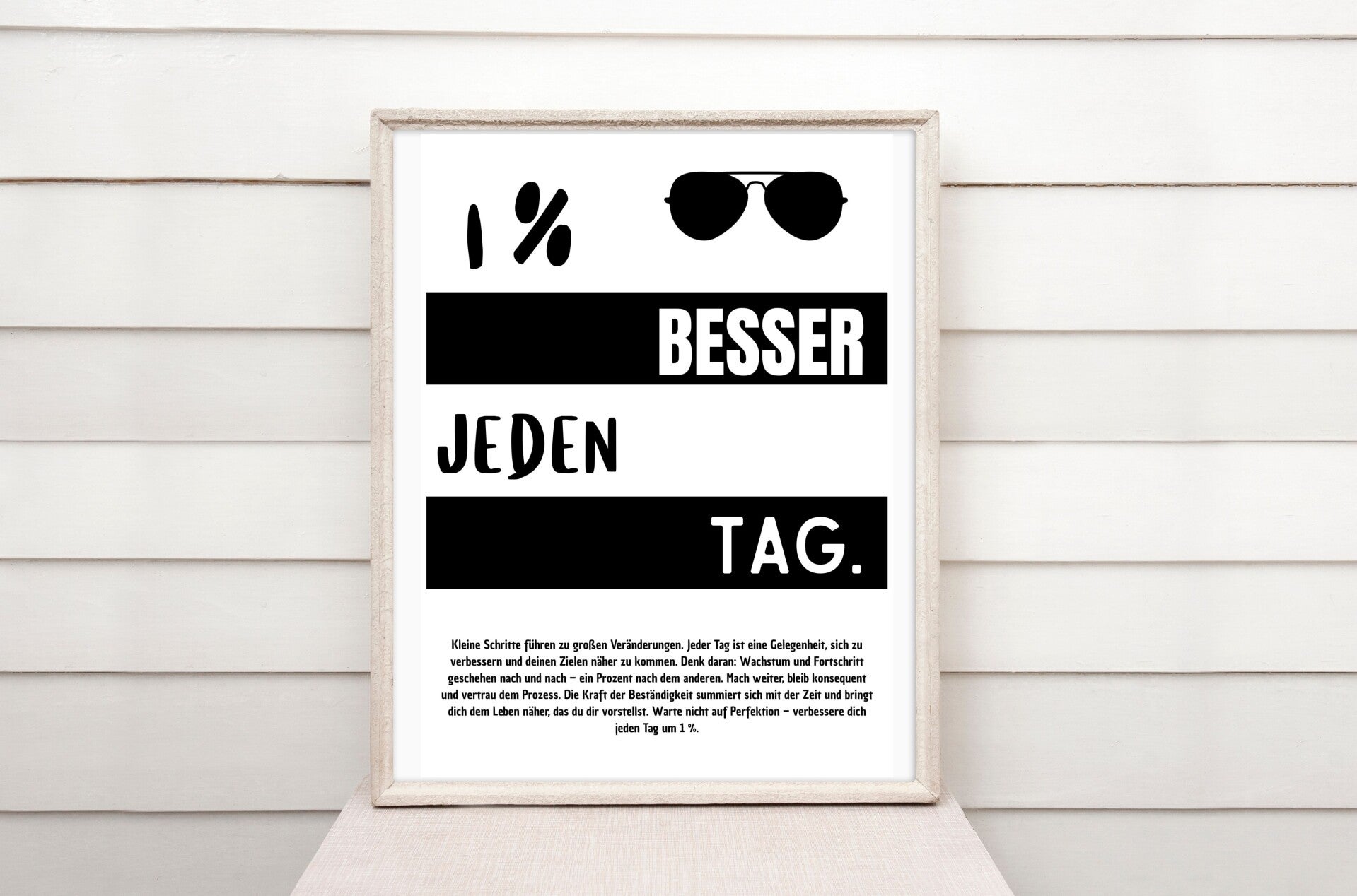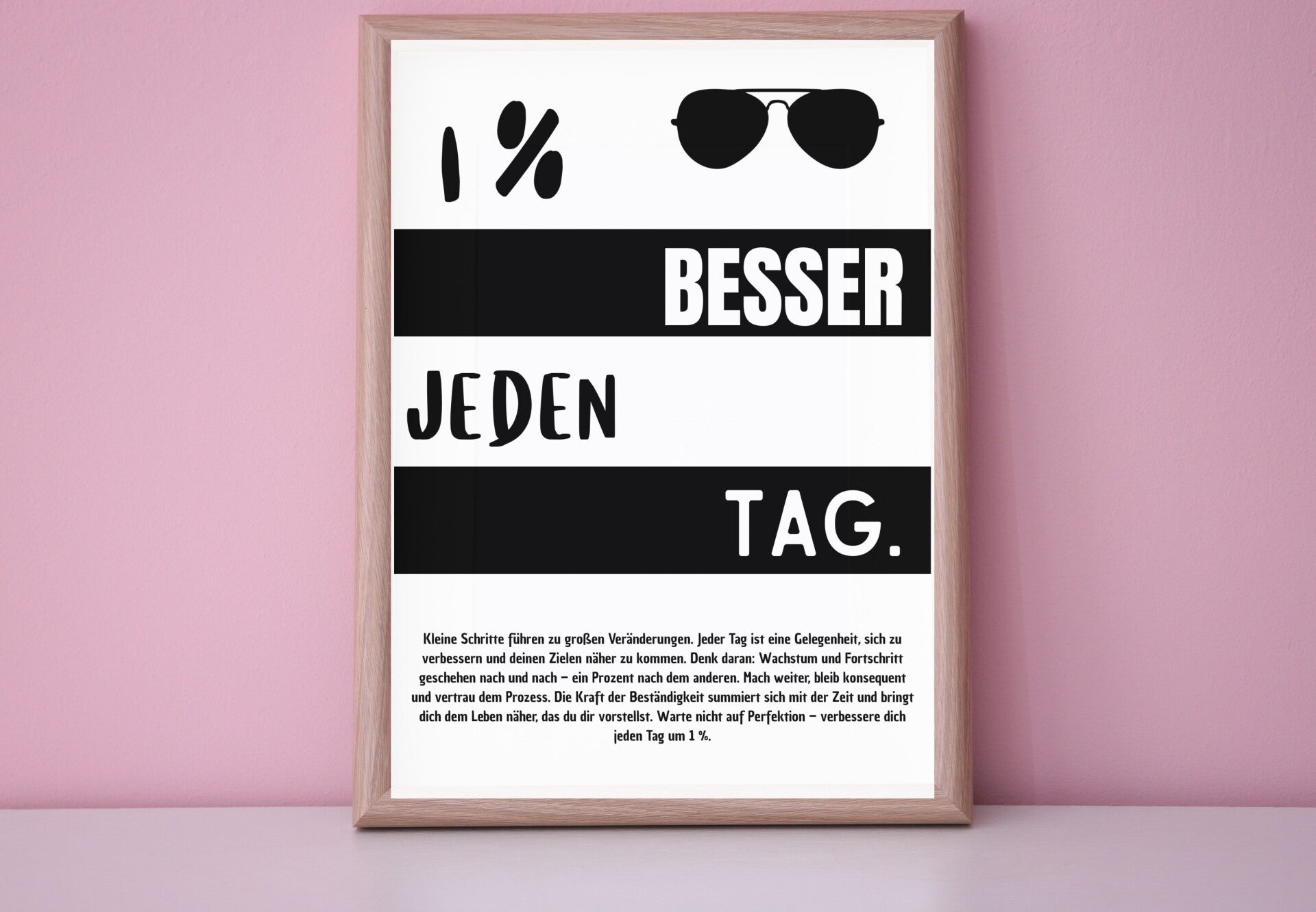 1 % besser jeden Tag! Motivationsposter Fitness Büro Business Projektteam Persönlichkeitsentwicklung Poster A4 | Geburtstagsgeschenk | Modernes Wandbild für Büro, Home Office & Wohnräume | Schnelle Druckvorlage Sofort-Download png-Datei