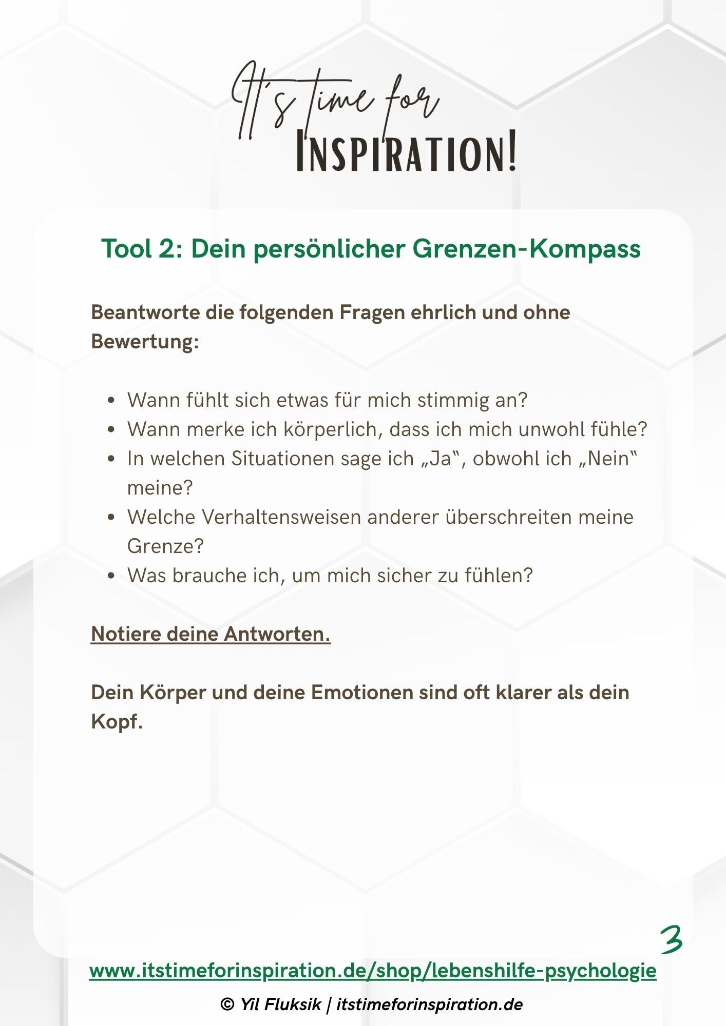 Dieses Booklet enthält 10 bewusst kompakte Mini-Tools, jeweils mit viel Platz für deine eigenen Notizen und Reflexionen: