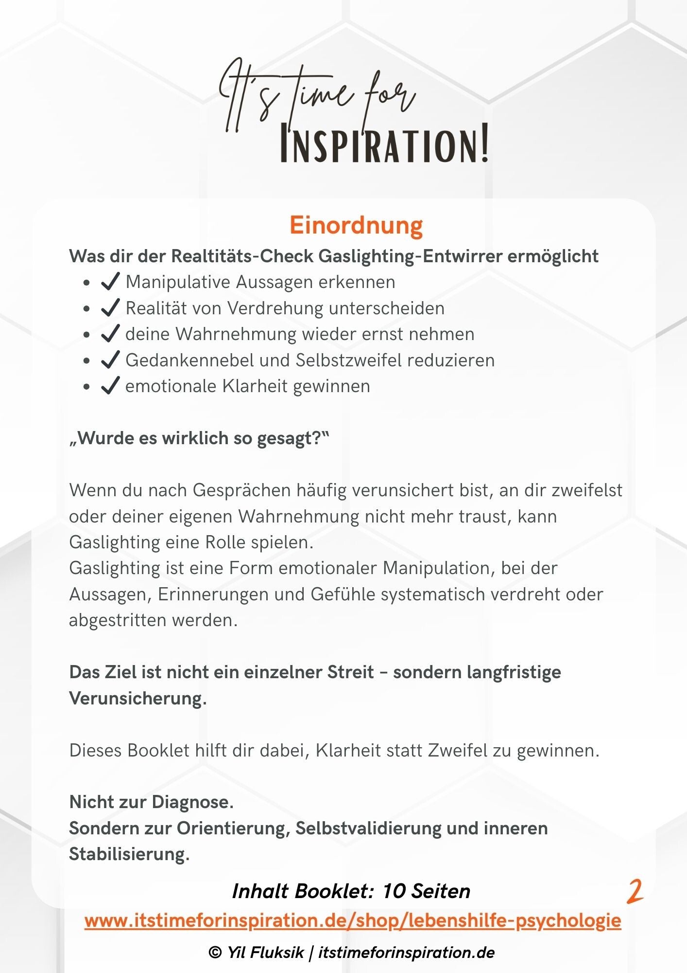 Gaslighting erkennen - Realitäts-Check | Dein Booklet für mehr Klarheit und Orientierung im Umgang mit toxischen und narzisstischen Mitmenschen | 10 Seiten erstellt von Yil Fluksik, Autorin | pdf, Sofort-Download