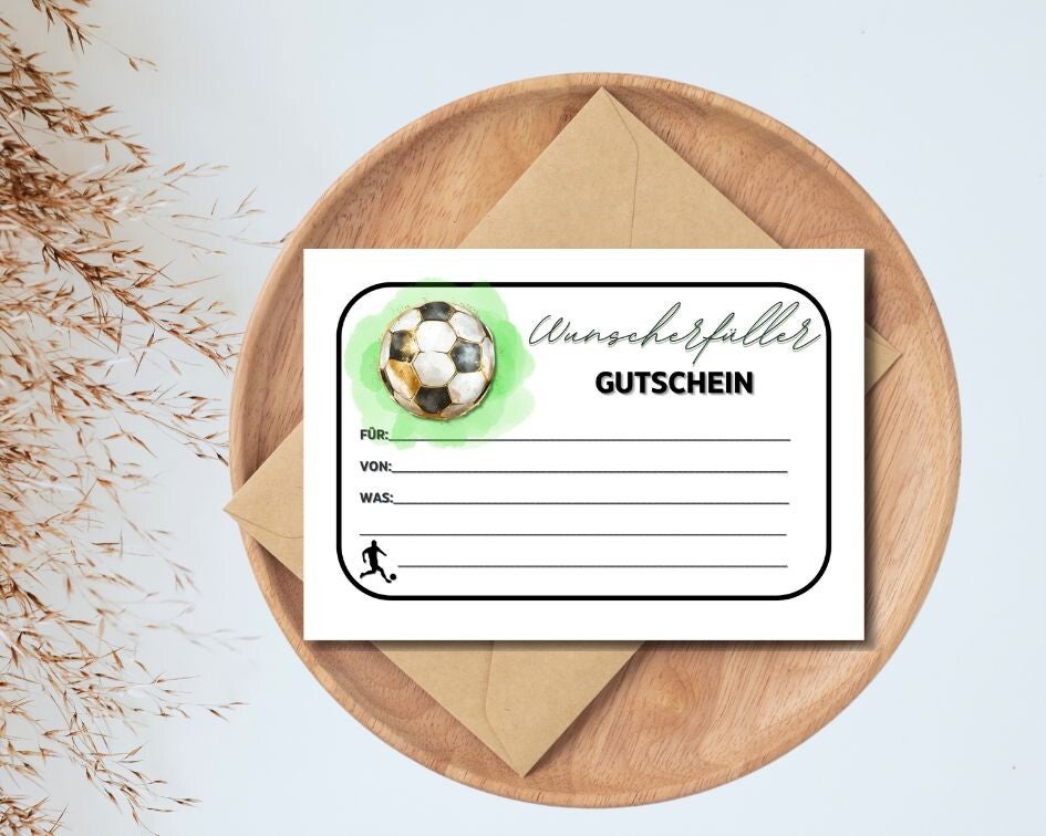 Fussball Gutschein Wunscherfüller | A6 zum Ausdrucken 14,8 - 10,5 cm | DIY Gutscheinkarte selber basteln | Last-Minute-Geschenk für Fussballer & Fussballfans | Vorlage Sofort-Download png-Datei